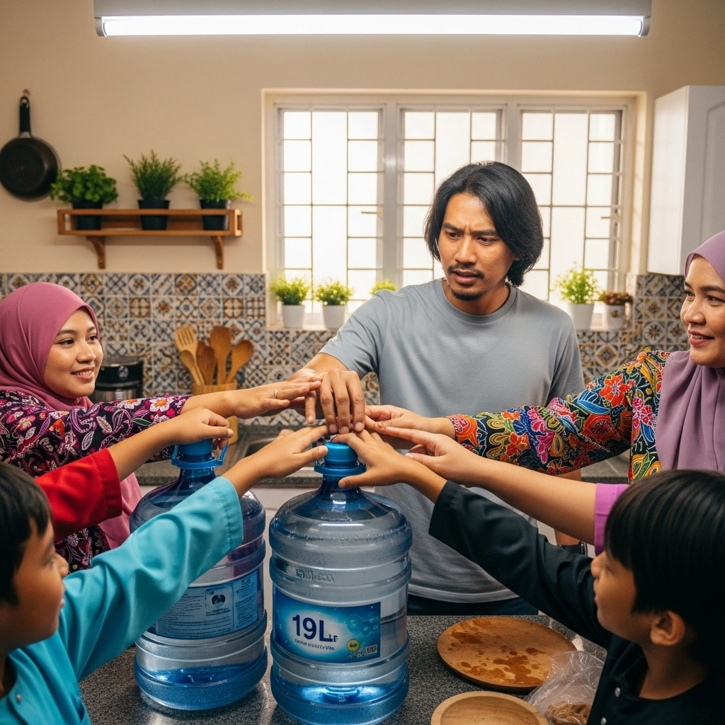 Botol air besar tak hygienic kalau ramai orang sentuh bahagian muncung.